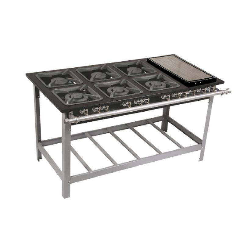 Queimadores: 3 simples e 3 duplos, em ferro fundido